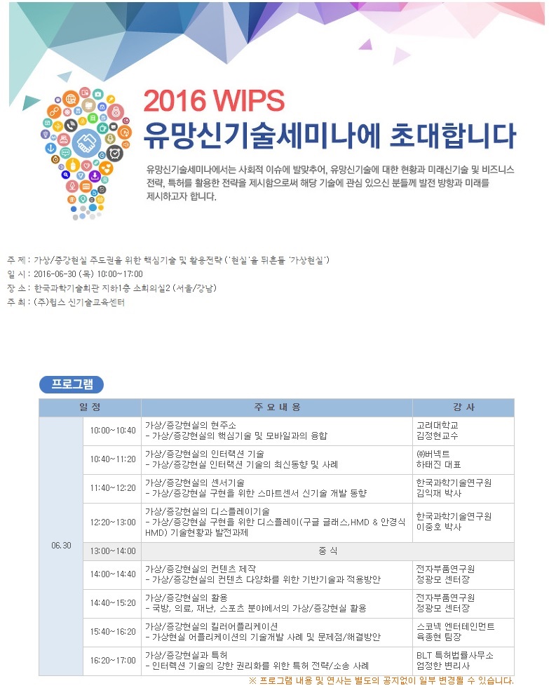 세미나의 주제는 "가상/증강현실 주도권을 위한 핵심기술 및 활용 전략이었습니다.